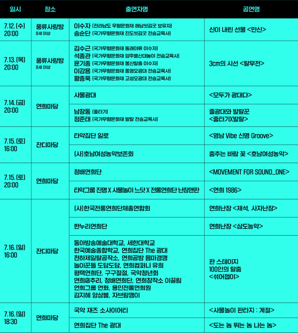 [출처 : 대한민국 구석구석, 전통공연예술진흥재단, 서울K가족축제, 국제아동청소년연극협회]